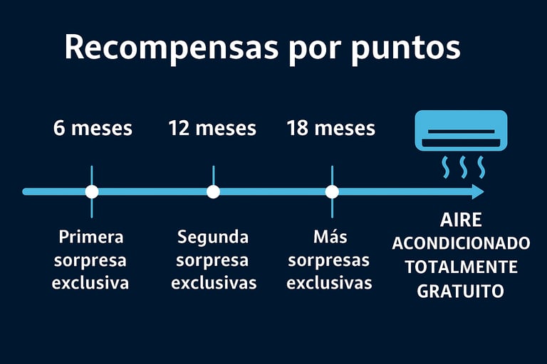 Desde el mes 6 comienzas a recibir regalos. A los 24 meses, eliges tu aire acondicionado gratuito.ACCESO EXCLUSIVO A NUESTRO CLUB PRIVADO DE WHATSAPP